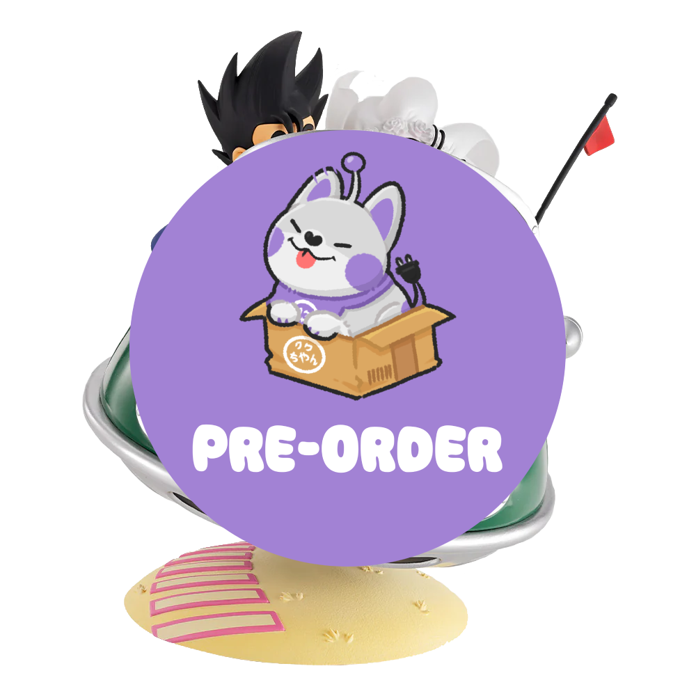 Son Goku and Chi-Chi wearing the costumes they wore in the anime's ending! The car's texture and Chi-Chi's veil are made of clear material, so pay attention to the detail!